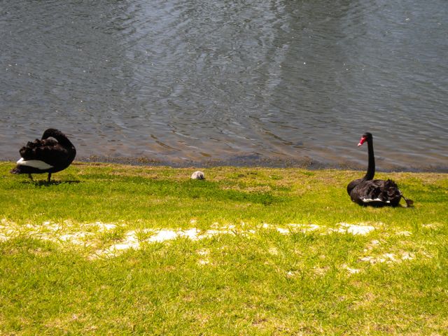 Abbiamo pedalato lungo piste immerse nel verde, con piante di mimose, pappagalli e fiori strani, con un profumo intenso misto all’ “odore” salmastro dell’acqua del fiume che ricorda un sacco l’Oceano! Guardate anche un po’ chi abbiamo incontrato? Una famiglia di cigni! Vedete il piccolino? e’ chiaro!