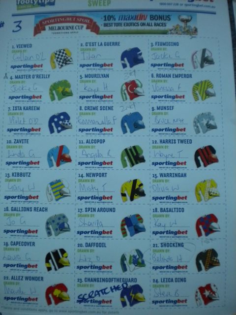 Ho scommesso al lavoro, dove non si può sceglire il cavallo, si scomette solo 2 o 5 dollari e poi  sorte viene assegnato un cavallo ad ogni puntata.