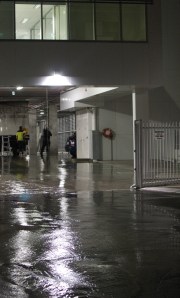 Un camion dei traslochi non ha preso bene le misure ed ha rotto un sensore dell’allarme anti incendio urtando il soffitto.. l’allarme si e’ attivato e con esso anche l’irrorazione di acqua che ha inondato la stadina adiacente!