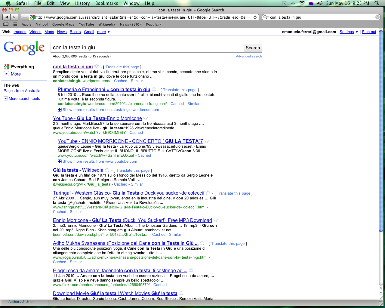 SONO AL TOP DELLA RICERCA!!!  Evviva!!! EVVIVA!!! Saro’ pure down under, ma sempre al top sono!!!