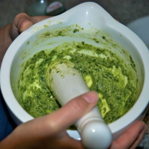 3. pesto alla genovese….fatto in casa col mortaio….linguine o spaghetti… almeno un etto e mezzo di pasta a testa….mmmmmmhhhhhhh…. sto arrivando!!!!!!!!!!