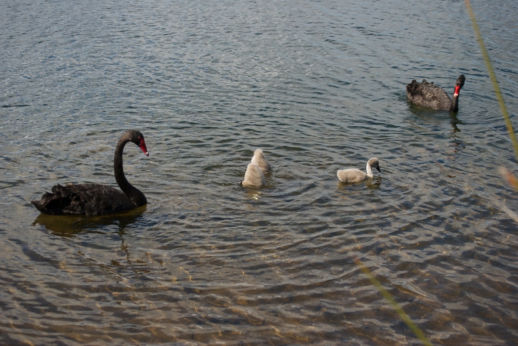 Domenica pomeriggio … in bicicletta per i parchi!  Questa volta niente serpenti, forse è ancora fresco, ma una famiglia di cigni neri!