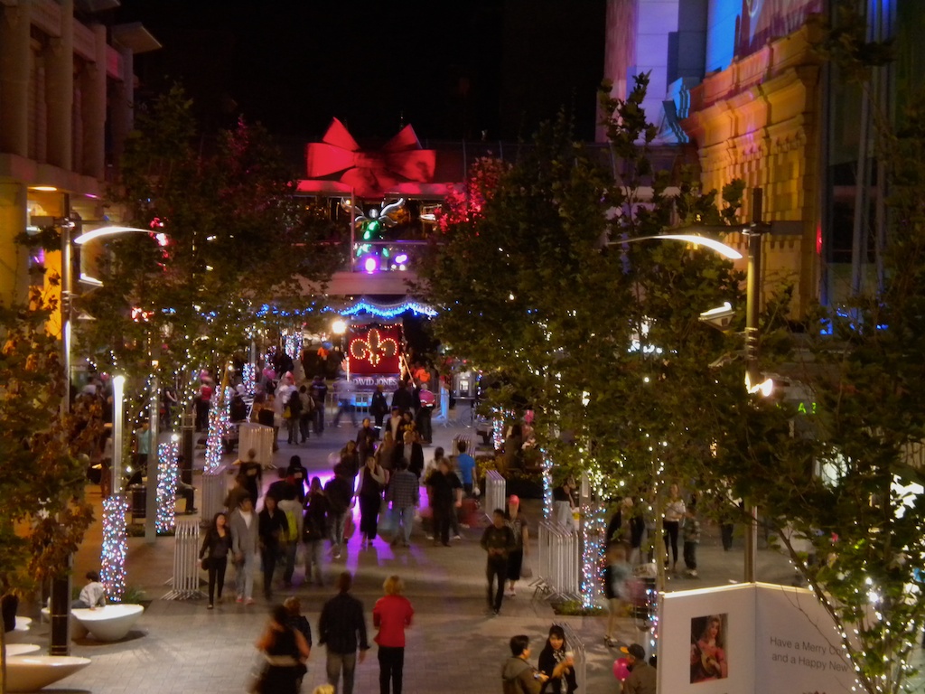 Si si, Venerdì sera infatti è arrivato babbo natale su una slitta trainata dalle renne e… seguito da un canguro che saltava!! La piazza era piena di gente e bambini, cantanti e presentatori. Dalle 19.30 alle 20.30, un’ora di intrattenimento.. poi tutti a nanna, mi raccomando, siamo a Perth!