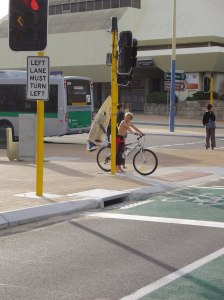 Il quotidiano trasporto della tavola da surf, abituale e non inusuale qui, direi anche ingegnoso!