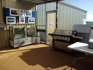 L’aeroporto e’ molto particolare, e’ una striscia asfaltata su un campo di terra rossa con un piccolo ristoro composto da cucina, frigo bar e barby ovviamente!