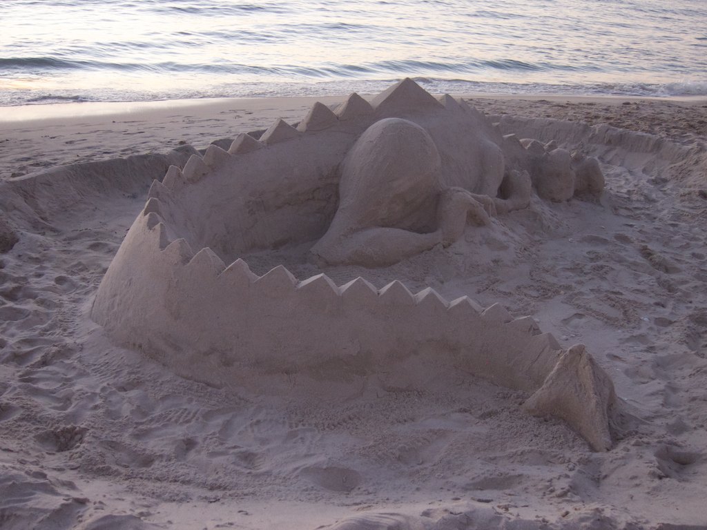 1. Molto interessante! una bella mostra d’arte all’aperto sulla spiaggia. Mi piace molto il coccodrillo (perchè non si muove!) e quella spece di provolone che c’è alle tue spalle: ma che cosa è? Italia 90 poi….fantastica!!!!