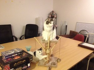 1. Molto belle le gattone,devono essere anche un po’ viziate a giudicare dai giochi che hanno a disposizione!