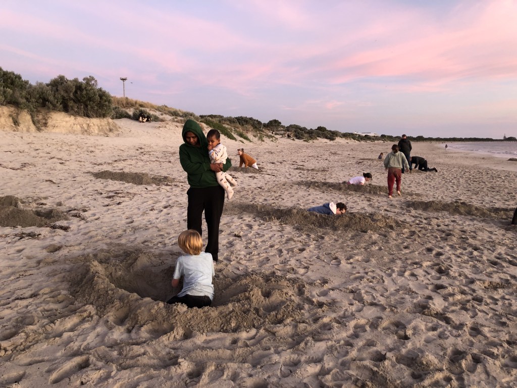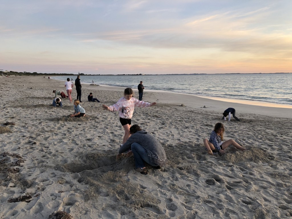 Bel gioco, ma avete presente la sera d’inverno in spiaggia? tanto divertimento per i bambini, tanto freddo per i più grandi che comunque hanno goduto di un tramonto con colori unici !