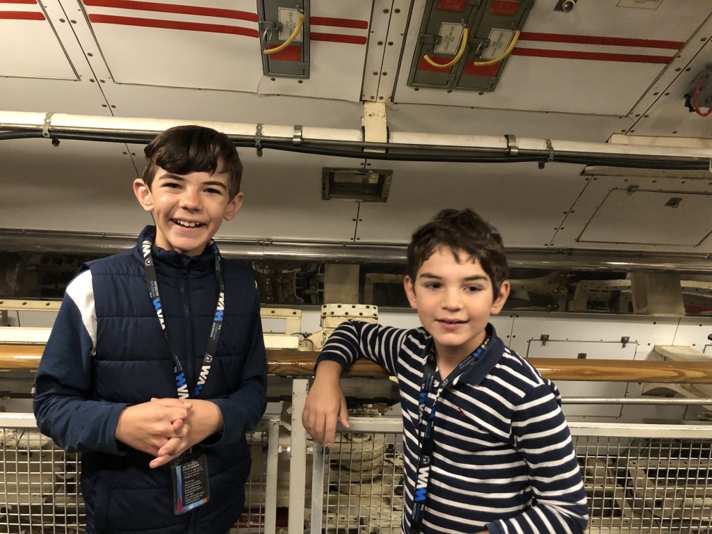 La visita guidata dura circa un’ ora e mezza e va bene da per bambini di età superiore ai 7 anni. Ci sono dei passaggi stretti all’interno (magari non adatti a tutti), ma la cosa forse che può essere fastidiosa è l’odore dei motori, degli olii e lubrificanti. Insomma sembra di essere un po’ in un officina delle macchine all interno.