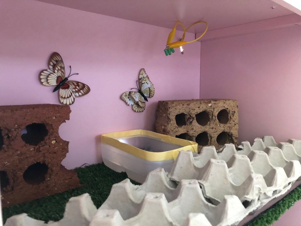 Ogni piano è previsto di piante, fiori e disegni per attrarre gli insetti, mattoni e nascondigli per proteggerli.